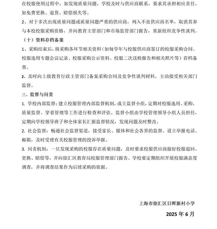 上海市徐汇区日晖新村小学校服管理工作细则