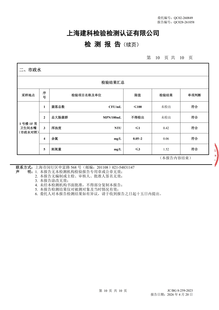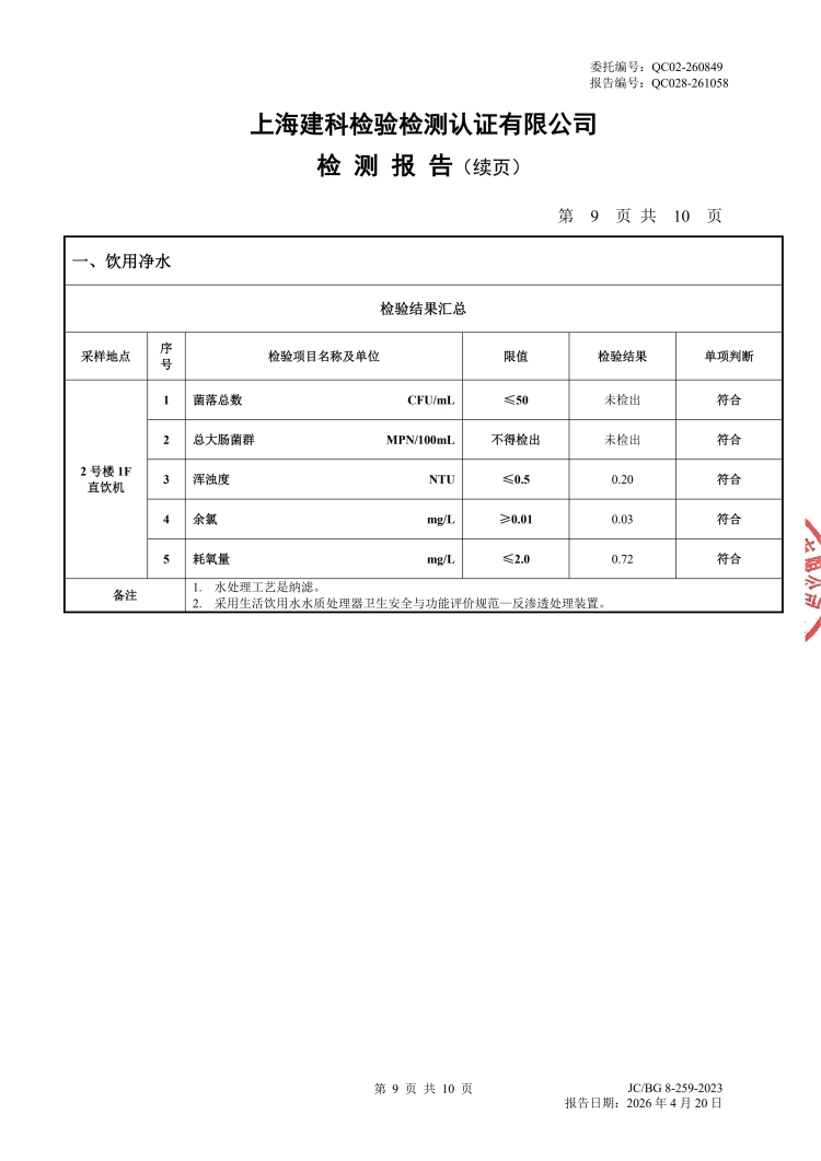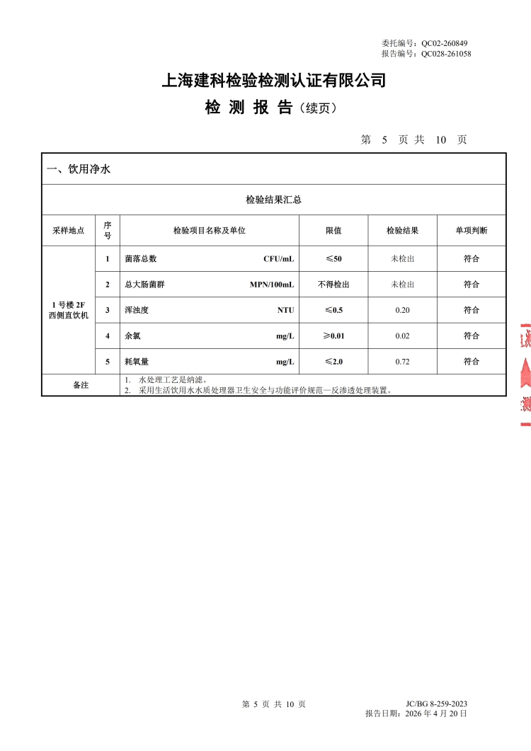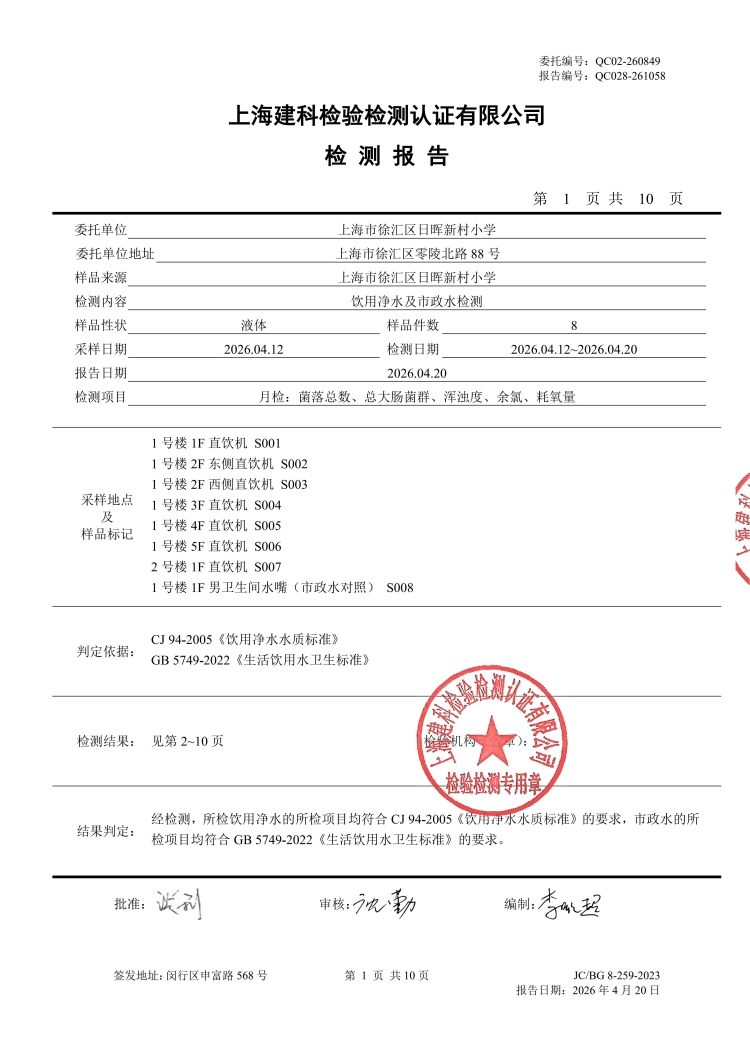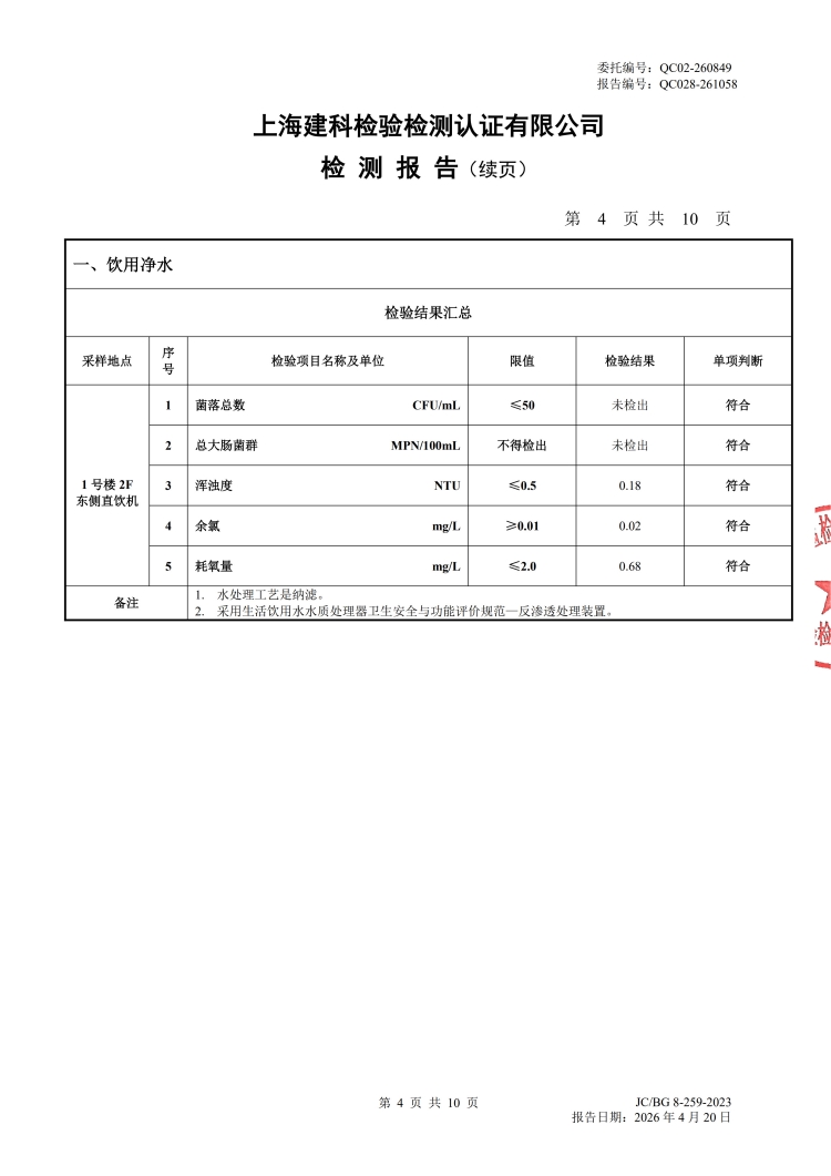 2026年直饮水设备水质检测报告(4月月检)